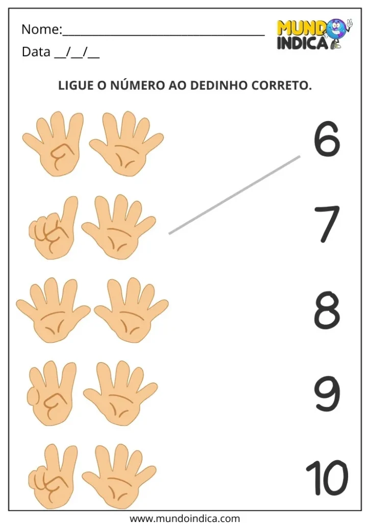 Peça que a criança conte e aponte os elementos, depois relacione com o número.